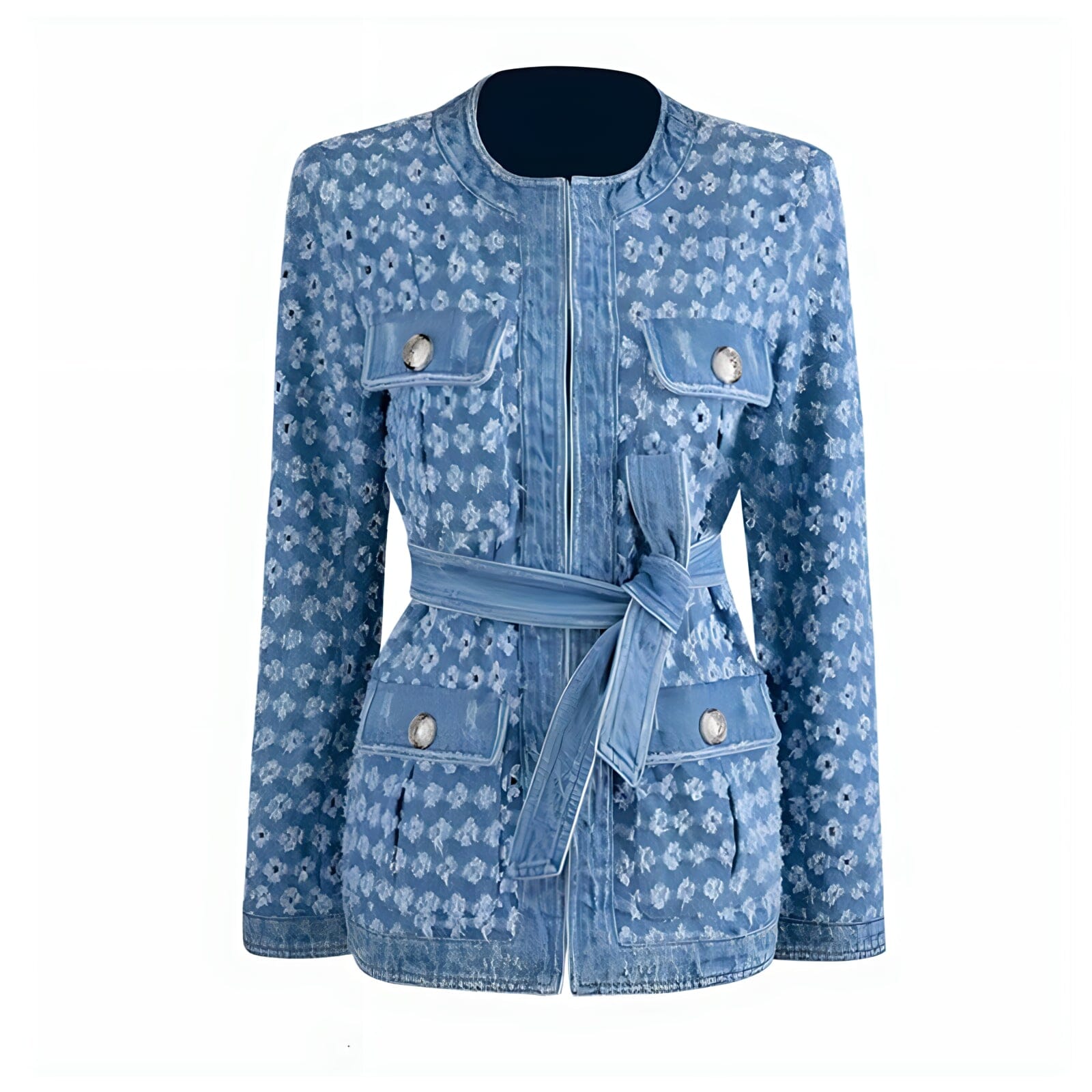 Expertly crafted with detailed construction throughout, the blazer features a luxurious, polyester-cotton fabric blend designed for superior comfort and enduring style. Double front pocket accents, long-tail mid-drift sash and eye-catching embroidered styling help complete the iconic look and make this piece a wardrobe essential. Make your presence known.