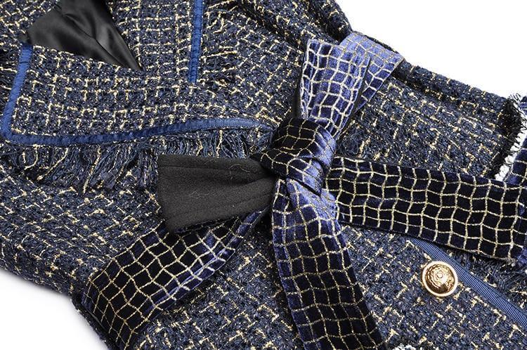 Designed with superior styling and craftsmanship, the long sleeve plaid overcoat offers a unique blend of casual comfort and high street fashion. Featuring a premium fabric blend, decorative bow, oversized front pockets, and a polished brass accented buttons with meticulously detailed construction throughout. Exude a new level of confidence.