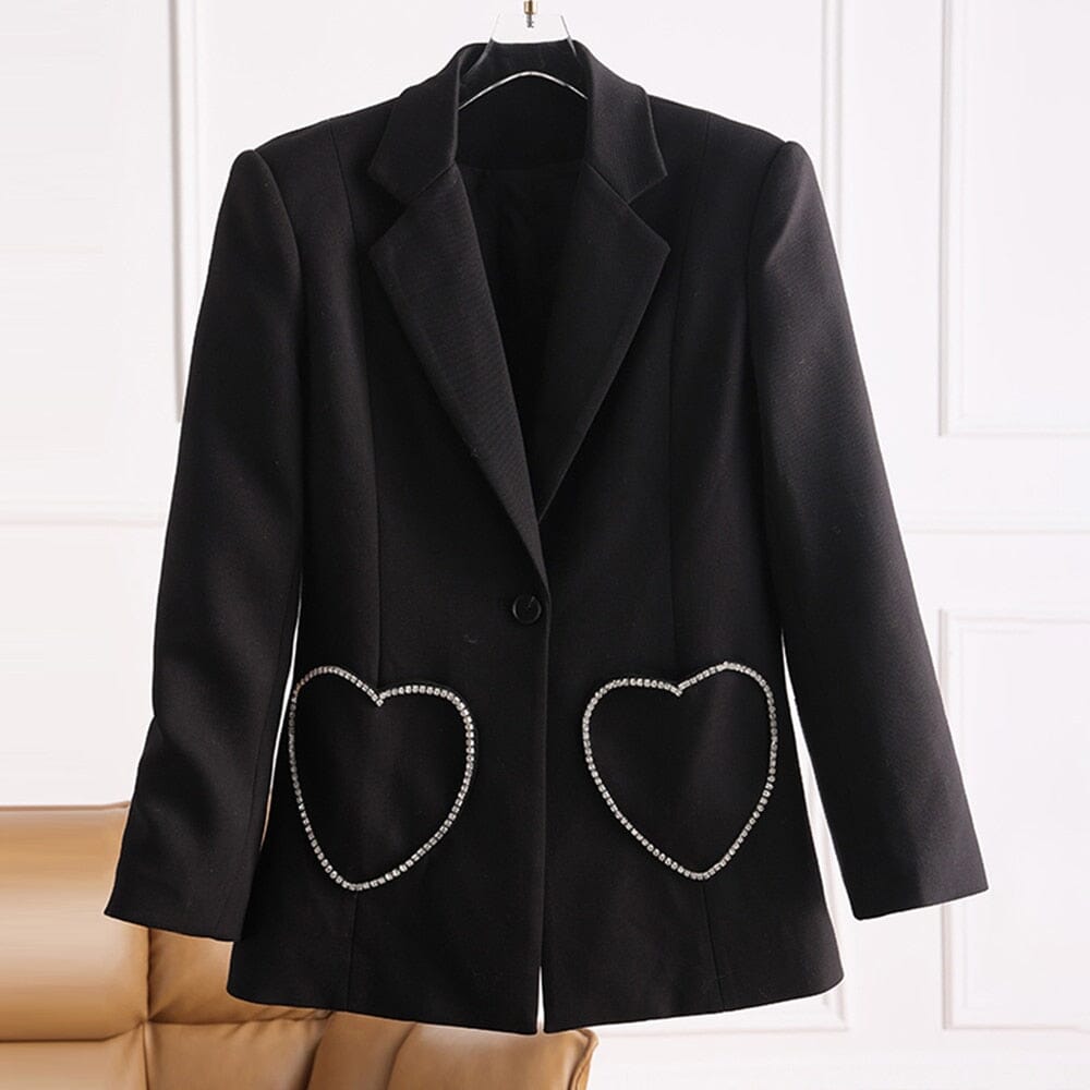 Immerse yourself in luxury and high-street fashion with the meticulous handcrafted sequin blazer. Featuring a premium polyester-cotton woven fabric blend, slim modern-design, and a dazzling sequin heart shaped accent styling. Make sure all eyes are on you this season with this exclusive piece.