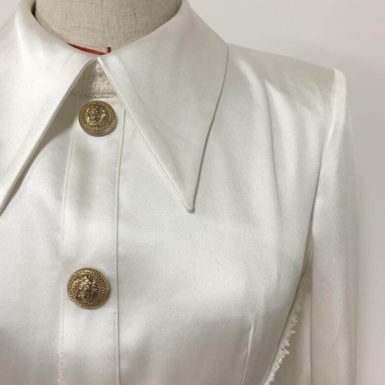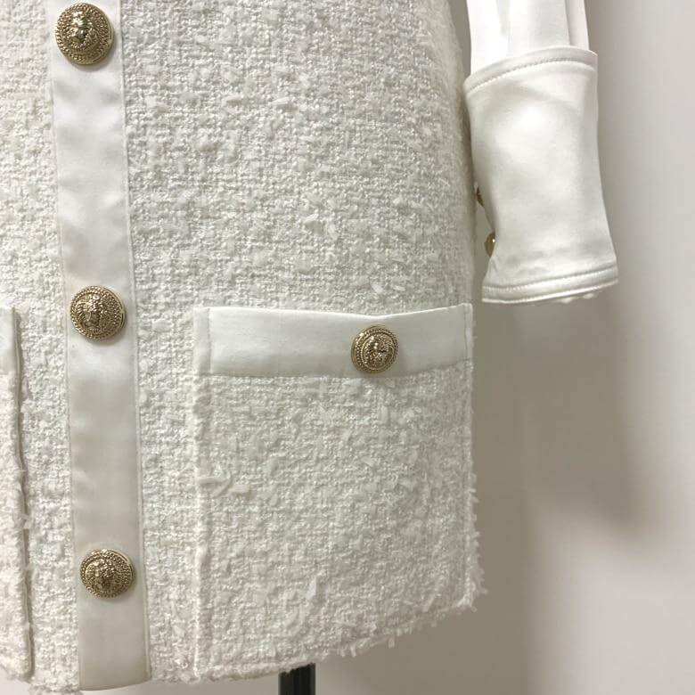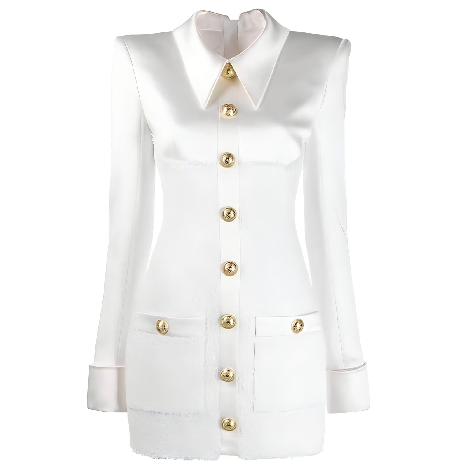 Expertly crafted with intricate construction throughout, the blazer features a premium, fabric blend and a designed for superior comfort and enduring style. Gold-accented buttons and a double-breasted turn down collar help complete the look and make this piece a wardrobe essential. Turn heads.